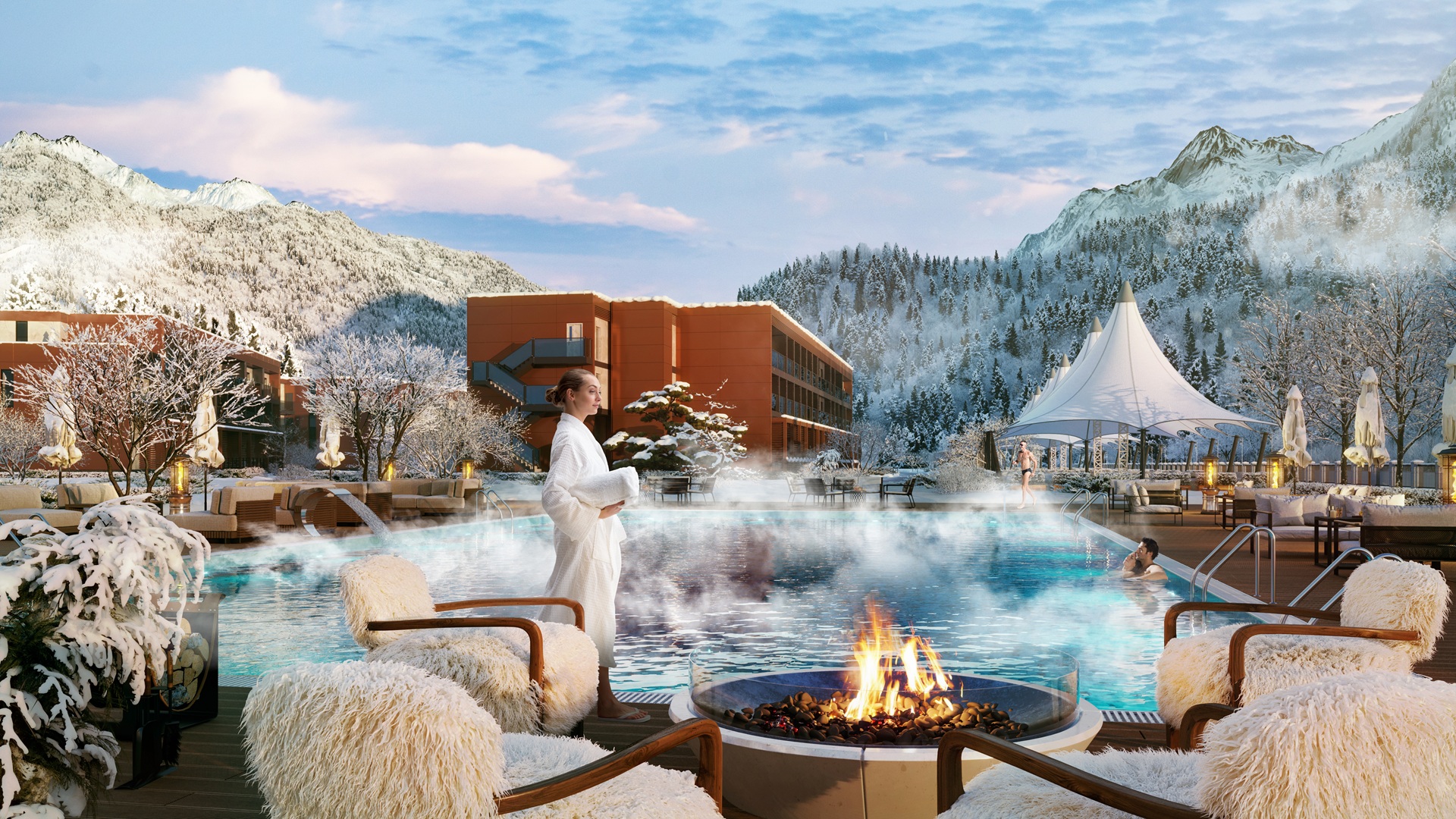 Комплекс открытых подогреваемых круглогодичных бассейнов, баня, с прилегающей зоной отдыха - лежаки и зонтики, так же предоставление барного обслуживания у бассейна.